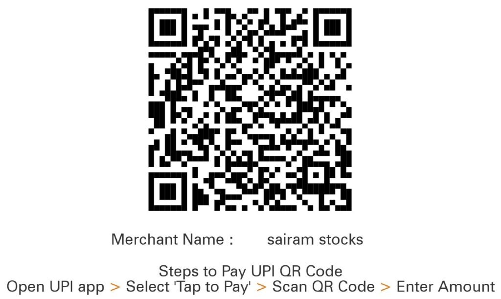 A/C No. :- 093005004361 IFCI CODE :- ICIC0000930 A/C Holder Name :- SAIRAM STOCKS Branch :- NIKOL A/C No. :- 31940100010564 IFCI CODE :- brab0bapuna A/C Holder Name :- Arunbhai D. Rangpariya Branch :- NIKOL UPI ID :- sairamstocks.ra@validicici Accepted Payment Here